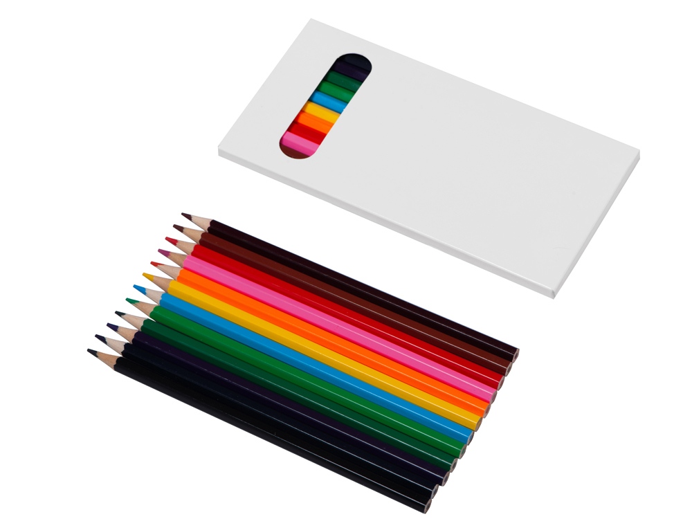 Набор из 12 шестигранных цветных карандашей твердостью ТМ. Нанесение можно сделать на всей поверхности упаковки