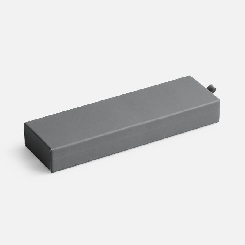 Картонный футляр с покрытием софт-тач с флокированным ложементом для одной ручки.