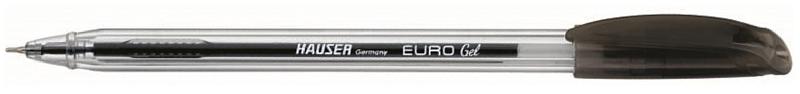 Гелевая ручка Hauser Euro Gel, корпус - прозрачный пластик, элементы дизайна - пластик под цвет чернил, цвет чернил - черный, толщина стержня - 0,55мм, 12,шт/уп