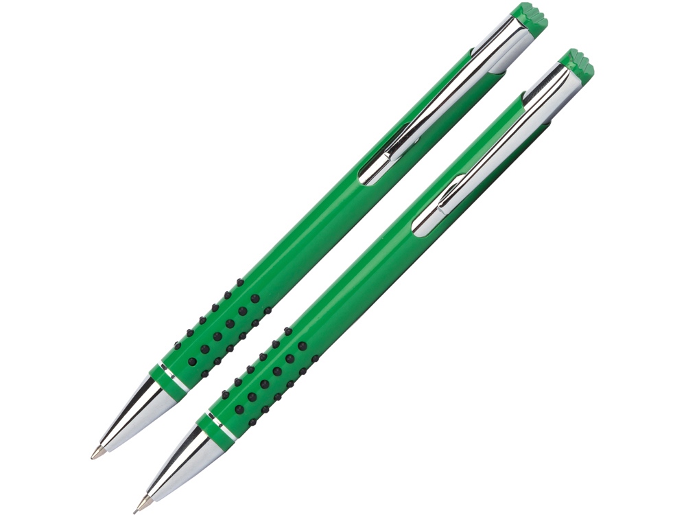 Набор письменных принадлежностей, состоящий из шариковой ручки с нажимным механизмом и механического карандаша, предлагается в компактном пластиковом футляре. На ручку, карандаш и футляр можно нанести логотип и подарить в качестве сувенира или небольшого презента клиенту компании.