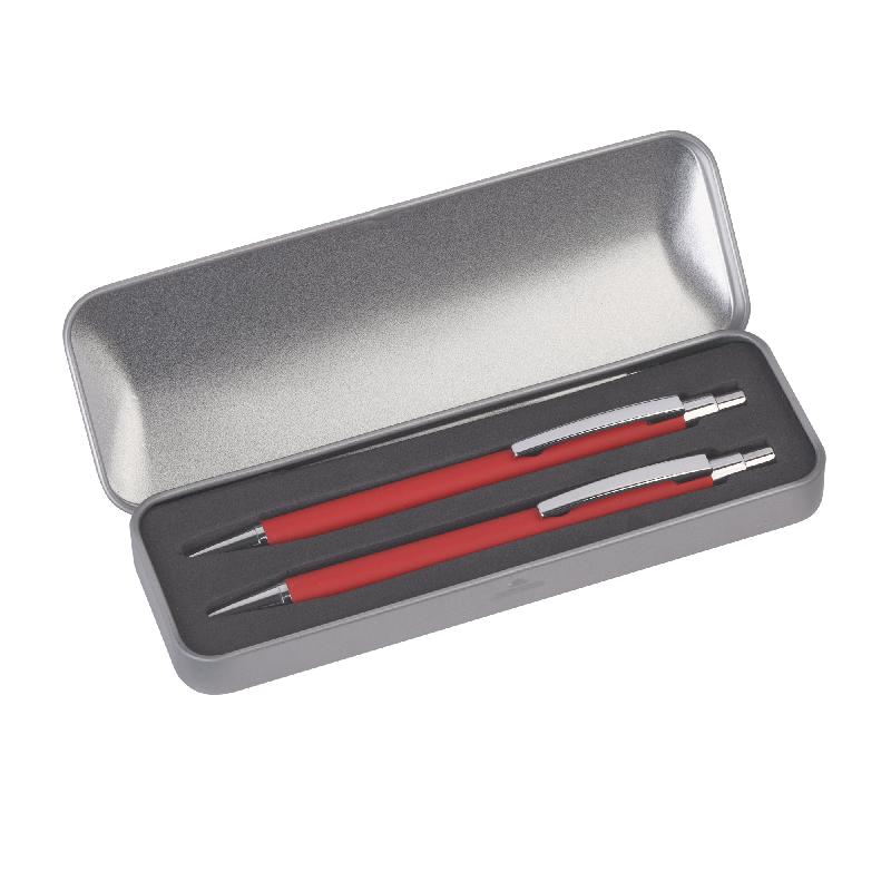 Металлическая ручка и карандаш с корпусом в покрытии soft touch в металлическом черном футляре.