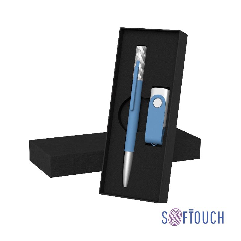 Набор ручка "Clas" + флеш-карта "Vostok" 16 Гб в футляре, оранжевый, покрытие soft touch
