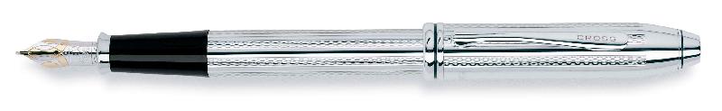 Ручка перьевая Cross Townsend. Корпус-латунь и платиновое покрытие с алмазной гравировкой. Отделка и детали дизайна-родиевое покрытие. Перо-золото 18К/родий, тонкое. Цвет-платиновый.