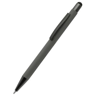 Бархатистая на ощупь ручка Story сотф-тач сделана из металла. Синие чернила, имеет стилус для взаимодействия с портативными устройствами. Толщина пишущего узла 1 мм, длина письма рассчитана на 700 м. Цвет по PANTONE® (максимально приближен): 186 C.