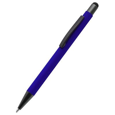 Бархатистая на ощупь ручка Story сотф-тач сделана из металла. Синие чернила, имеет стилус для взаимодействия с портативными устройствами. Толщина пишущего узла 1 мм, длина письма рассчитана на 700 м. Цвет по PANTONE® (максимально приближен): 186 C.