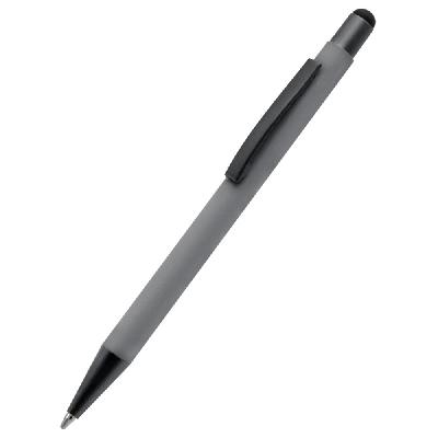Бархатистая на ощупь ручка Story сотф-тач сделана из металла. Синие чернила, имеет стилус для взаимодействия с портативными устройствами. Толщина пишущего узла 1 мм, длина письма рассчитана на 700 м. Цвет по PANTONE® (максимально приближен): 186 C.