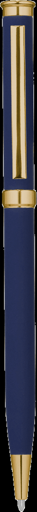 Корпус с софт-тач покрытием. Наконечник, кольцо и верхняя часть пластиковые, золотистые.