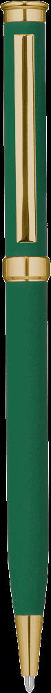 Корпус с софт-тач покрытием. Наконечник, кольцо и верхняя часть пластиковые, золотистые.