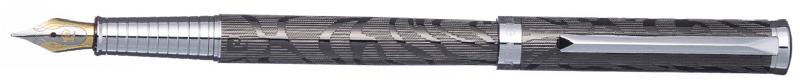 Ручка перьевая Pierre Cardin EVOLUTION. Корпус и колпачок - латунь с гравировкой, покрытие - пушечная сталь. Отделка и детали дизайна - сталь, хром. Съемный колпачок. Перо - сталь с позолотой. Размер пера - средний (М), 0,7-0,8 мм. Цвет - "пушечная сталь". Упаковка В.