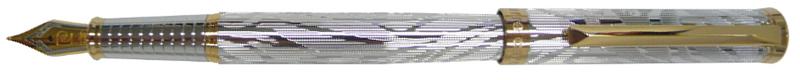 Ручка перьевая Pierre Cardin EVOLUTION. Корпус и колпачок - латунь с гравировкой, покрытие - хром. Отделка и детали дизайна - сталь, позолота. Съемный колпачок. Перо - сталь с позолотой. Размер пера - средний (М), 0,7-0,8 мм. Цвет - серебристый. Упаковка В