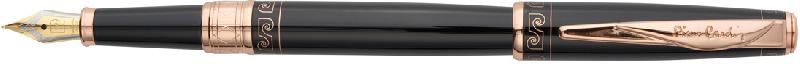 Ручка перьевая Pierre Cardin SECRET Business. Корпус и колпачок - латунь и лак. Отделка и детали дизайна - сталь, позолота. Съемный колпачок. Перо - нержавеющая сталь с позолотой. Размер пера - средний (М), 0,7-0,8 мм. Цвет - черный с золотистым орнаментом. Упаковка B