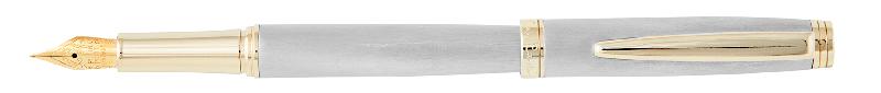 Ручка перьевая Pierre Cardin SHINE. Корпус - латунь с сатиновым хромированным покрытием. Отделка и детали дизайна - латунь и позолота. Съемный колпачок. Перо - нержавеющая сталь и позолота. Размер пера - тонкий (F), 0,5 - 0,6 мм. Цвет - серебристый. Упаковка B-1