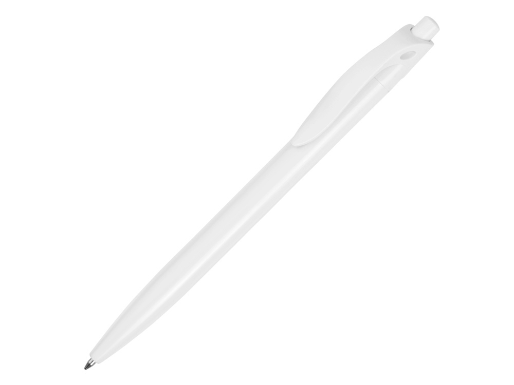 Стильная пластиковая ручка с ярким цветным клипом и белым корпусом отлично подойдет для нанесения логотипов и рекламной информации. Нажимной механизм.
