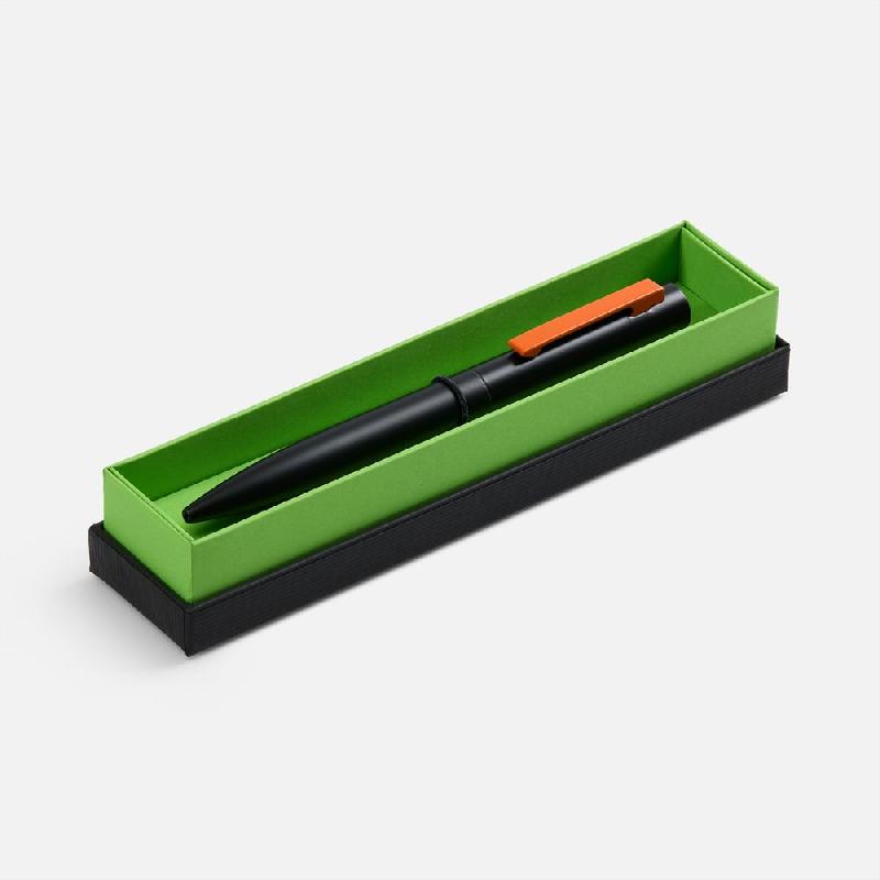 Стильная металлическая ручка Inkolor в матовом черном корпусе с цветным клипом. Футляр из дизайнерской бумаги с контрастным коробом придает подарку законченный и элегантный вид.