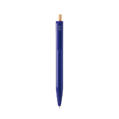 Шариковая ручка из переработанного ABS с бамбуковой кнопкой. Джамбо-заправка синими чернилами.