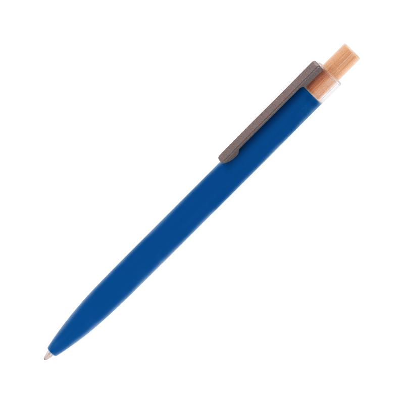 Трендовая эко-ручка, изготовленная из переработанных алюминия и пластика, с кнопкой из бамбука.