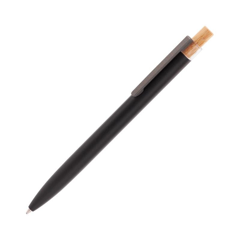 Трендовая эко-ручка, изготовленная из переработанных алюминия и пластика, с кнопкой из бамбука.