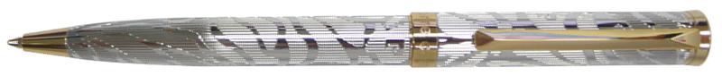 Ручка шариковая Pierre Cardin EVOLUTION. Корпус и колпачок - латунь с гравировкой, покрытие - хром. Отделка и детали дизайна - сталь, позолота. Цвет - серебристый. Упаковка В.