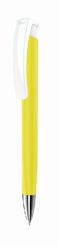 Автоматическая шариковая ручка в трехгранном корпусе из пластика с поверхностью soft-touch. Клип из белого глянцевого пластика, металлический наконечник с глянцевым хромированием.