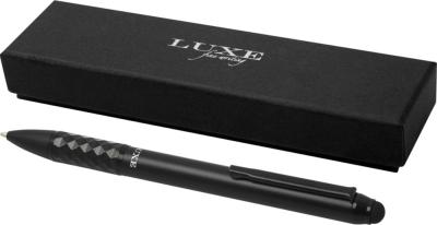 Шариковая ручка со стилусом и эксклюзивным дизайном сочетает в себе шикарный внешний вид и надежность. Корпус эргономичен для использования. Ручка заправлена черными чернилами и упакована в подарочную коробку LUXE. Ее можно дополнить перьевой ручкой или ручкой-роллером и использовать в качестве подарочного набора. Алюминий.