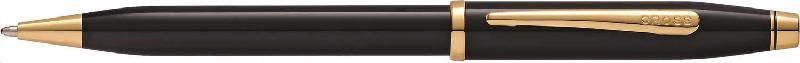 Ручка шариковая Cross Century II Black lacquer, черный лак с позолотой 23К, материал корпуса-латунь