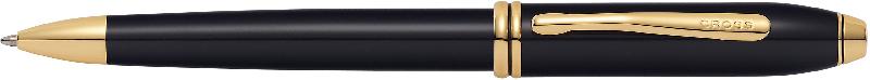 Ручка шариковая Cross Townsend. Корпус-латунь и многослойное лаковое покрытие. Отделка и детали дизайна-позолота 18К. Цвет-черный.