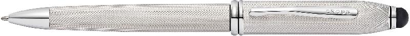 Ручка шариковая Cross Townsend Stylus со стилусом 8мм. Корпус-латунь, платина с алмазной гравировкой. Отделка и детали дизайна-платина. Цвет-платиновый.