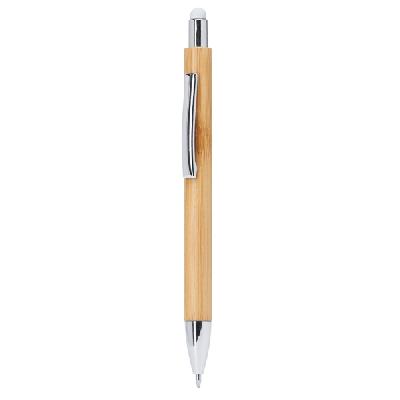 Шариковая ручка Eco line с бамбуковым корпусом, цветным указателем и металлическим клипсом. Серебристая кнопка, клип и наконечник. Прозрачная заправка jumbo диаметром 1,0 мм с синими чернилами.