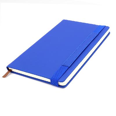 Блокнот формата А5 в твёрдой обложке из искусственной кожи. Материал обложки — термополиуретан, текстура — гладкая. Из особенностей: широкая эластичная застёжка со вставкой из кожзама. На неё можно нанести логотип либо слоган вашей компании. Размеры: 214*138*17 мм, 192 страницы / 96 листов, страницы разлинееные, бумага плотностью 80 г/м2. Размер вставки из кожзама 134*17 мм; ширина застёжки — 15 мм.