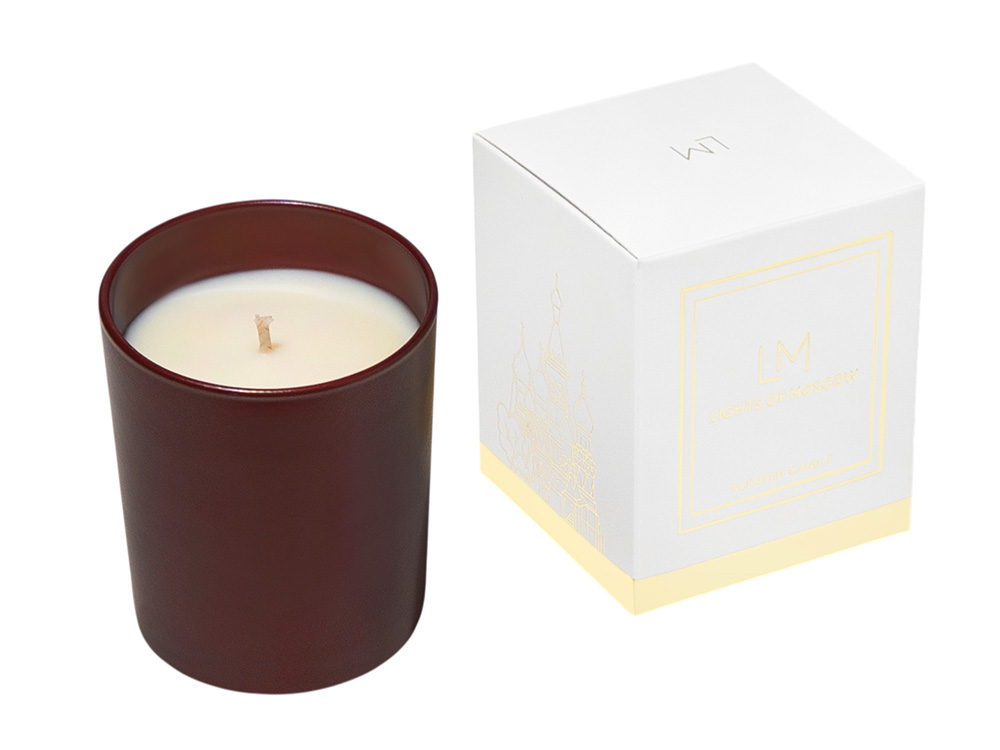 Коллекция аромасвечей Exclusive является уникальной не только из-за ароматов коллекции, но и благодаря тщательно разработанному дизайну упаковки, которая является напоминанием о том, что бренд Lights of Moscow - это ручное российское производство в самом центре Москвы. Белая коробка оформлена ярким золотым фольгированием, на левой стороне которой изображен Храм Василия Блаженного - одна из главных достопримечательностей на Красной площади в Москве.