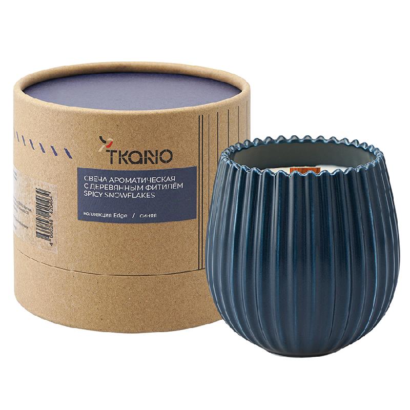 Свеча ароматическая с деревянным фитилем Spicy Snowflakes синего цвета из коллекции Edge с дизайном, вдохновленным русскими традициями, отлично подойдет для домашнего декора и создания в интерьере уютной, расслабляющей атмосферы. Фактурные грани и округлая поверхность фарфорового стакана отсылают нас к образу купола – символу духовного подъема и стремления к совершенству. Экологичные материалы, такие как соевый, кокосовый воск и фитиль из натурального дерева делают свечу безопасной для здоровья и окружающей среды. При горении она не выделяет вредных соединений и не коптит. Однако, во избежание перегрева стакана, рекомендуем не зажигать ее более, чем на 4 часа.
