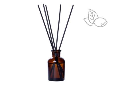 Объём диффузора 50 мл. Его будет достаточно для умеренного поддержания аромата в комнате до 15м2 в течение двух месяцев использования. Насыщенность аромата регулируется количеством используемых фибровых палочек.