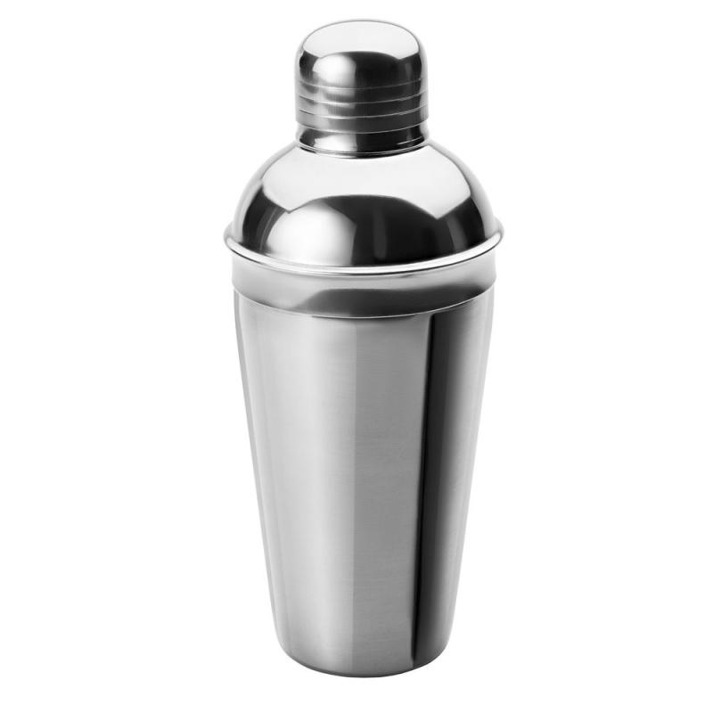 Классический шейкер для приготовления алкогольных и безалкогольных коктейлей и других смешанных напитков, например, холодного кофе фраппе или спортивного питания с протеином. Выполнен из нержавеющей стали и снабжен ситечком для фильтрации.
