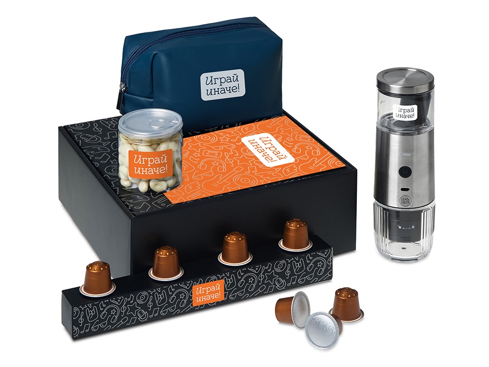 Набор Re:y. Boost о бодрости, энергии и маленьких ритуалах, которые можно взять с собой. Портативная кофемашина и кофе в капсулах позволяют приготовить ароматный напиток дома, в офисе или на прогулке. Кешью в глазури добавляет сладкую нотку, а косметичка позволяет взять любимые вещи с собой, куда бы вы ни отправились.. Этот набор превращает привычный утренний ритуал в момент бодрости и комфорта, где бы вы ни были.