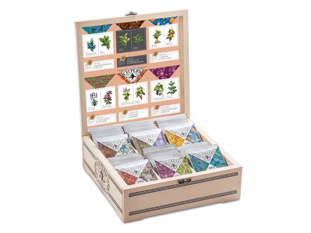 Подарочный набор с пакетированным чаем в деревянной шкатулке без лого