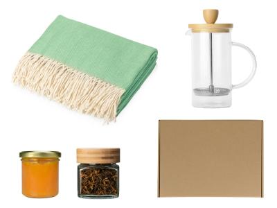 Подарочный набор с пледом, френчпрессом, чаем и вареньем