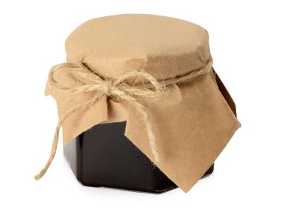 Банка варенья обернута крафт-бумагой, на которую возможно сделать нанесение корпоративного логотипа.