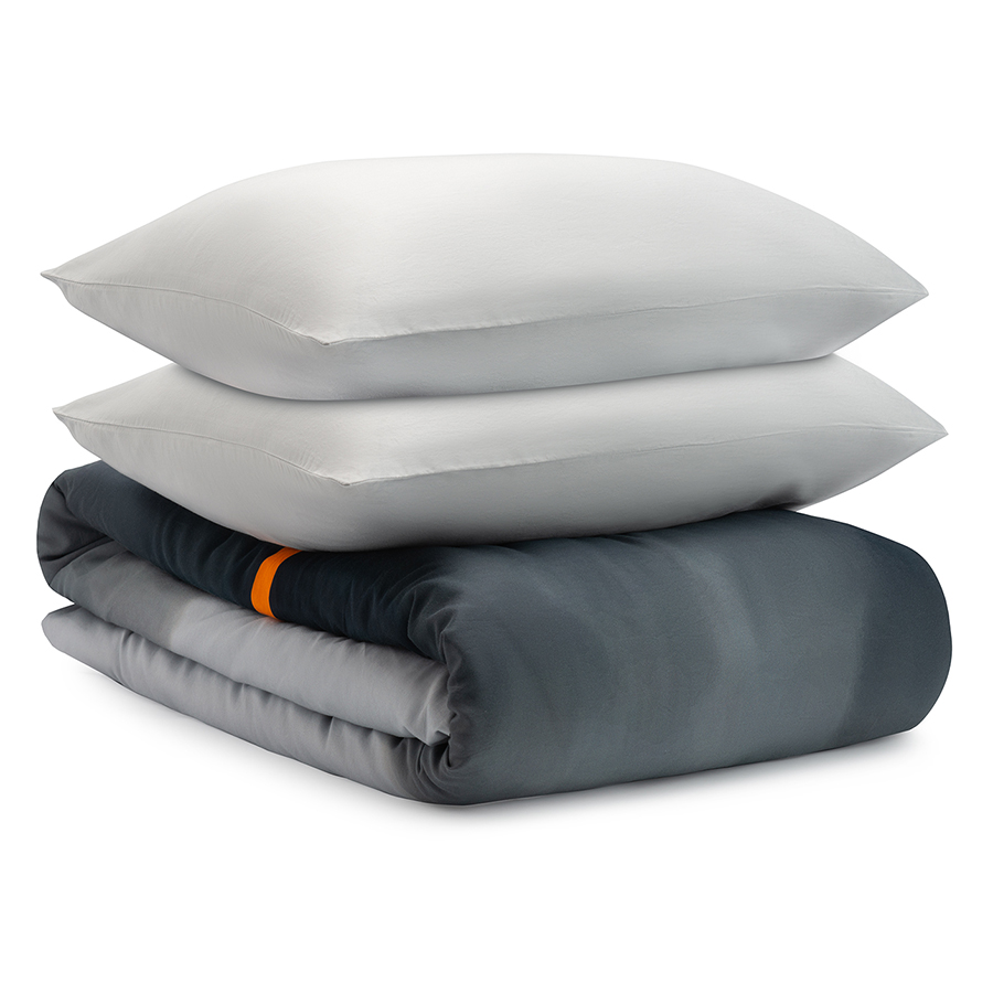 В комплекте: пододеяльник 200х220 см, застегивающийся на молнию, и две наволочки 50х70 см с системой закрытия клапан.