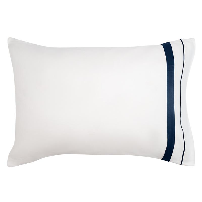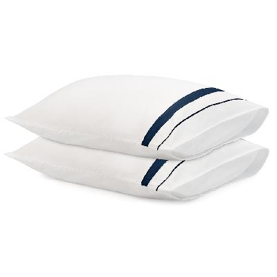 Набор из двух наволочек из сатина с синим кантом из коллекции essential, 50х70 см
