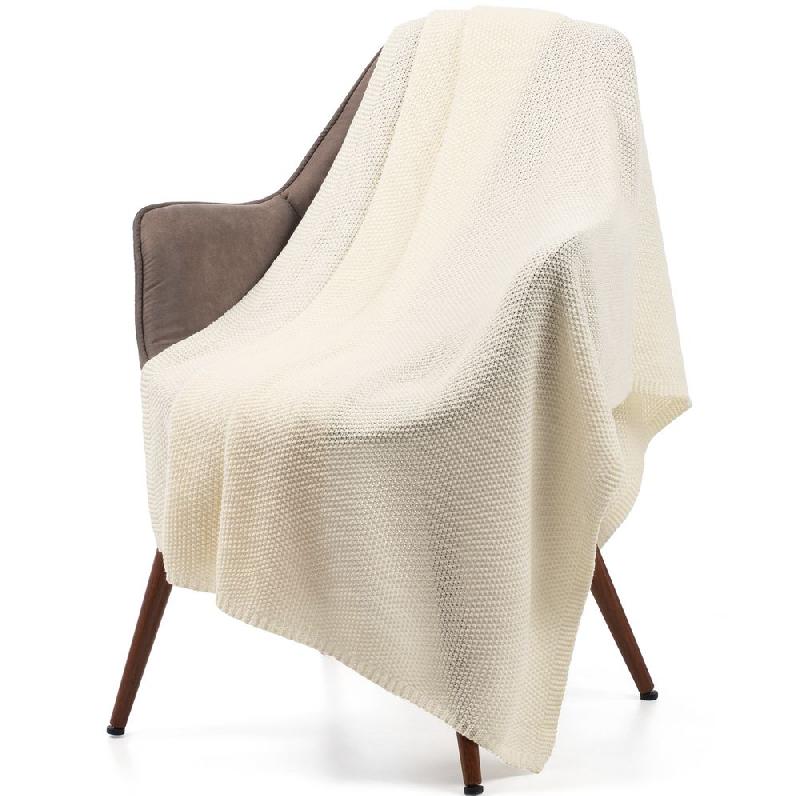 Объемный акриловый плед окутает своим теплом, а благодаря насыщенным цветам и мелкой ажурной вязке добавит изысканного шика в современный интерьер спальни или гостиной.