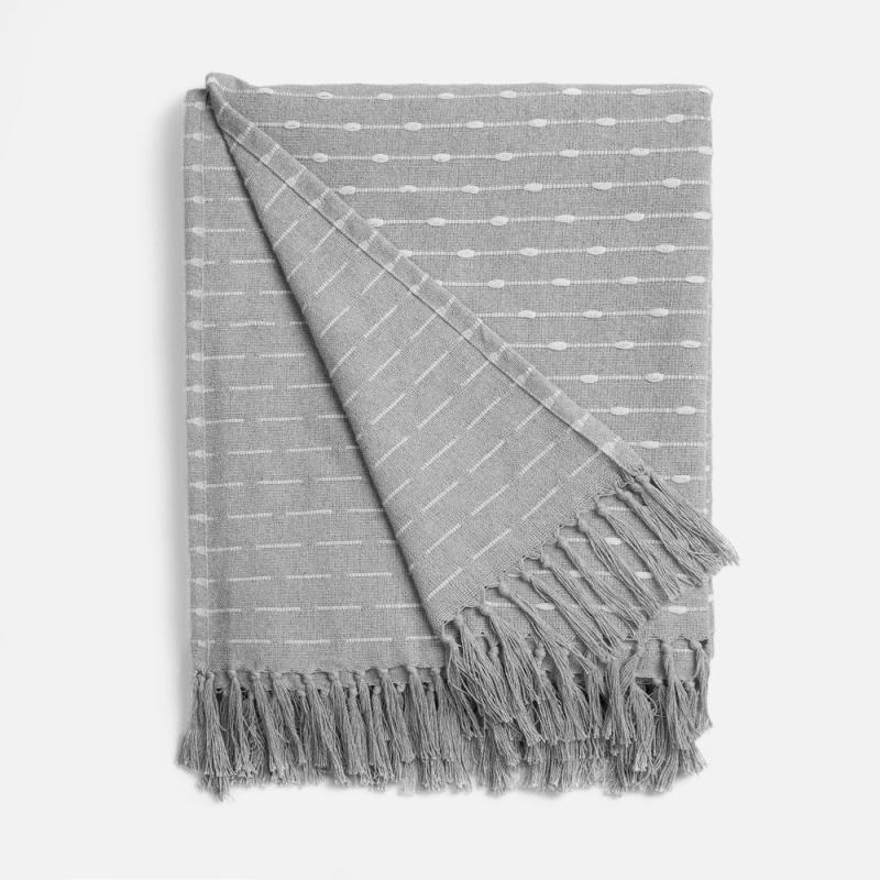 Смесовый состав пледа — 80% хлопка и 20% полиэстера — объединяет лучшее из мира натуральных и синтетических материалов. Хлопок дает натуральную мягкость и дышащую текстуру, а полиэстер добавляет прочности, помогает ткани не мяться, быстрее сохнуть и долго сохранять форму.