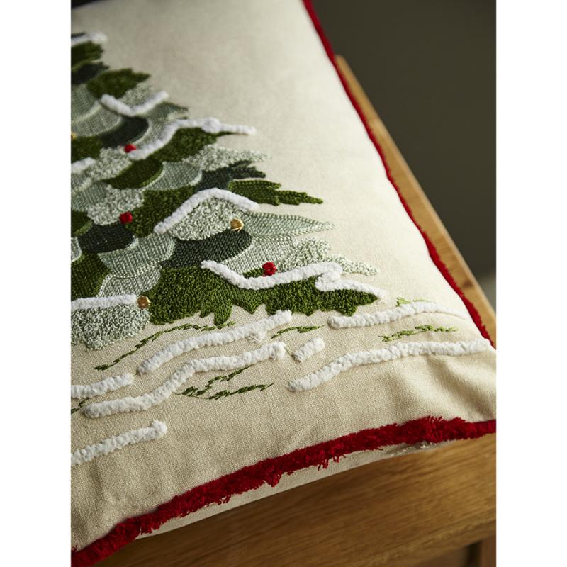 Подушка декоративная Festive tree из коллекции New Year Essential добавит нотку волшебства в любое пространство, создав в нем атмосферу теплоты и уюта. Принт в виде очаровательной елочки в заснеженном лесу дарит приятные эмоции и оживляет дизайн. Подушка идеально подходит для гостиной, спальни или детской комнаты.