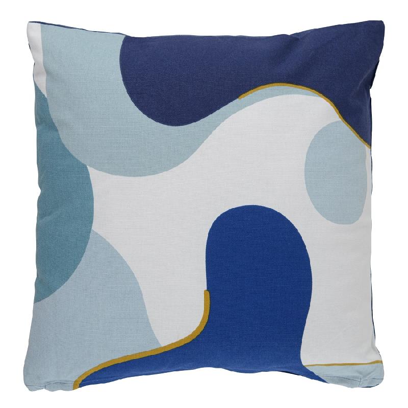 Подушка декоративная из хлопка синего цвета с авторским принтом из коллекции Freak Fruit дополнит любой современный интерьер. Абстрактный принт не имеет повторяющегося раппорта и представляет собой единую законченную картину.