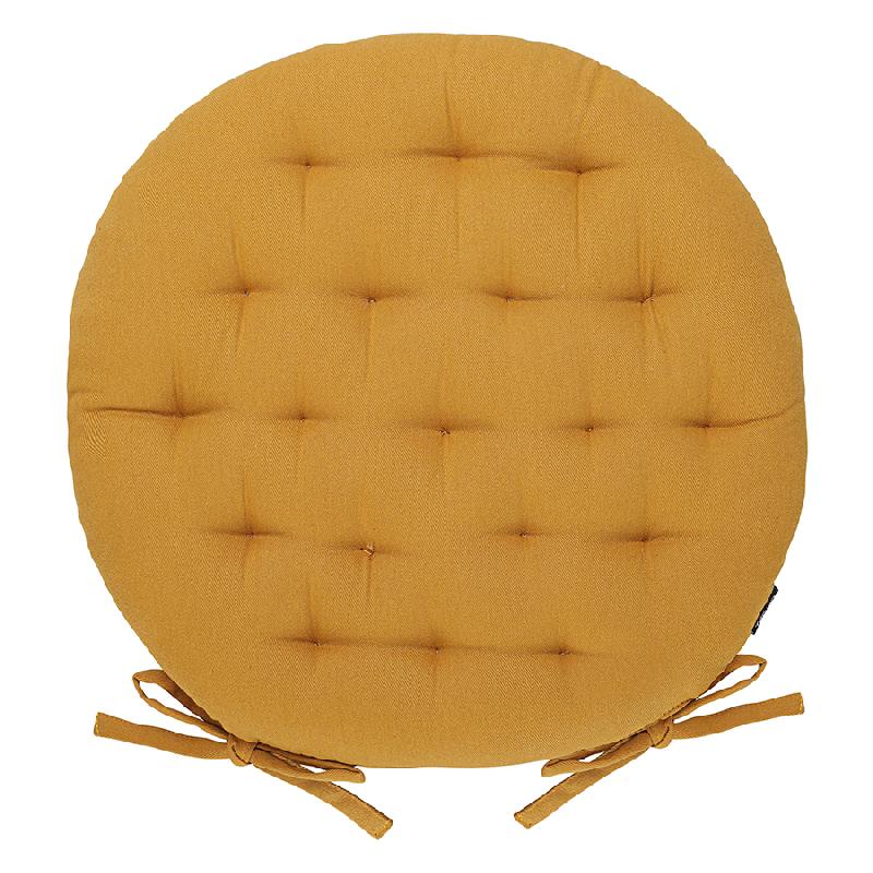Подушка круглая цвета карри из коллекции Essential станет отличным дополнением к вашей кухонной мебели. Ее можно использовать в качестве мягкой накладки на деревянные или металлические стулья, чтобы сделать их жесткую поверхность более удобной для сидения. Подушка легко фиксируется на ножках мебели с помощью специальных завязок. Однотонное изделие в лаконичном дизайне органично вписывается в любой современный интерьер. Чехол подушки изготовлен из экологичного и долговечного 100% хлопка. В качестве наполнителя используется плотный полиэстер, который позволяет изделию сохранять первоначальную форму на протяжении всего срока службы.