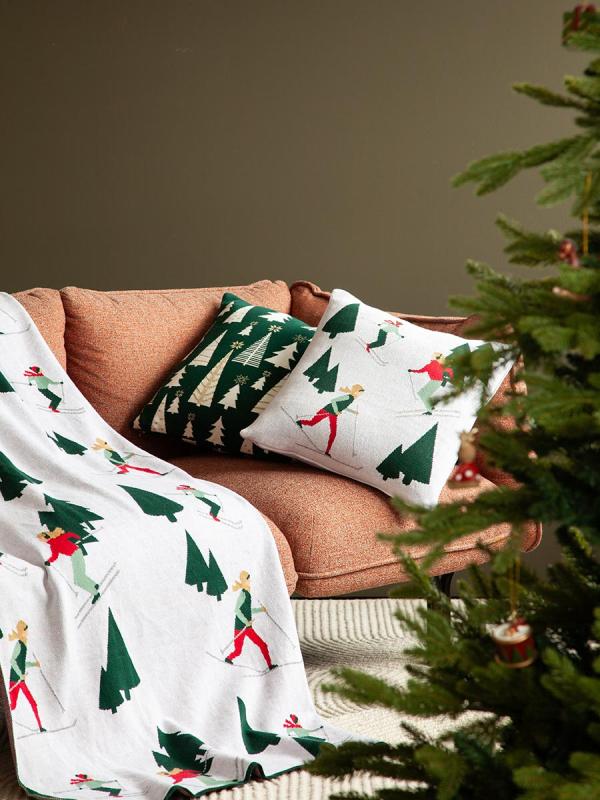 Подушка вязаная с новогодним рисунком let's ski из коллекции new year essential, 45x45 см