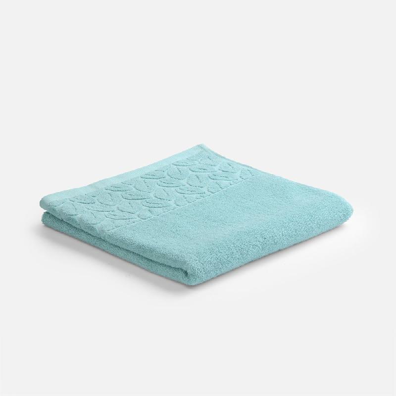 Светлые оттенки в сочетании с широким бордюром с рельефным растительным узором придают полотенцу элегантный и свежий вид.