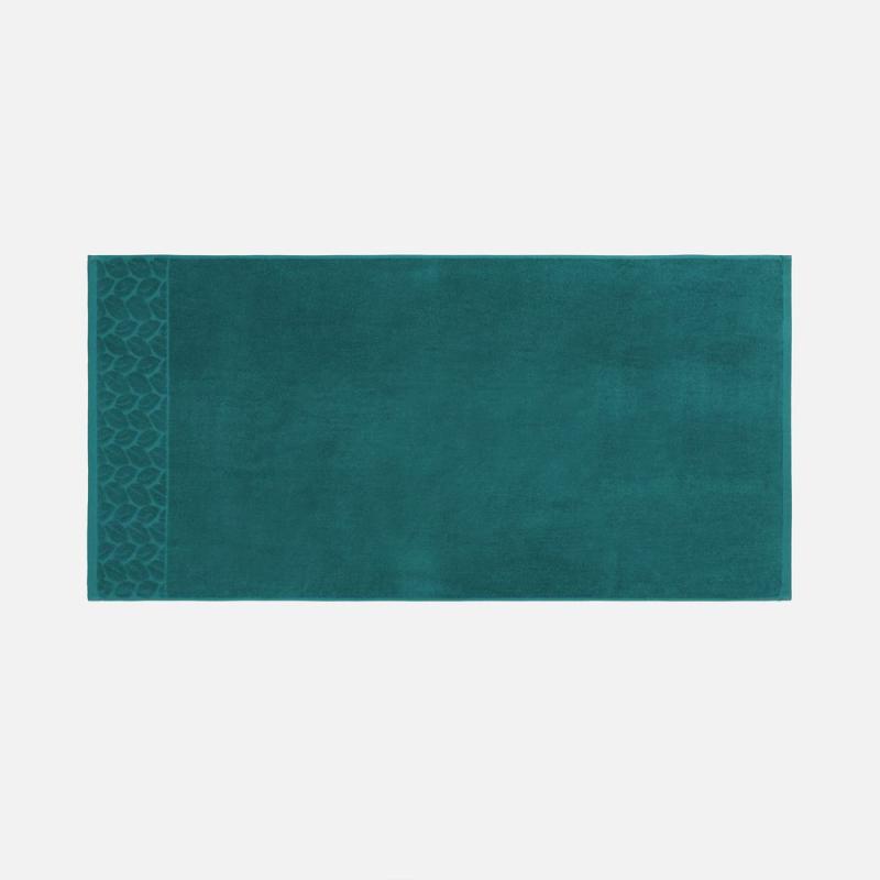 Светлые оттенки в сочетании с широким бордюром с рельефным растительным узором придают полотенцу элегантный и свежий вид.