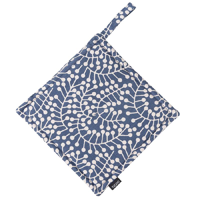 Прихватка темно-синего цвета с принтом Спелая Смородина из коллекции Scandinavian touch – практичный и полезный кухонный аксессуар. Рисунок со стилизованными ягодами смородины и округлыми линиями веточек разработан одним из ведущих финских дизайнерских агентств. Изделие хорошо сочетается с другим кухонным текстилем из этой же коллекции, оно станет ярким акцентом в интерьере кухни и гармонично впишется в любой современный стиль. Прихватка не нагревается и хорошо защищает от контакта с горячими поверхностями. Есть удобная петелька для подвешивания.