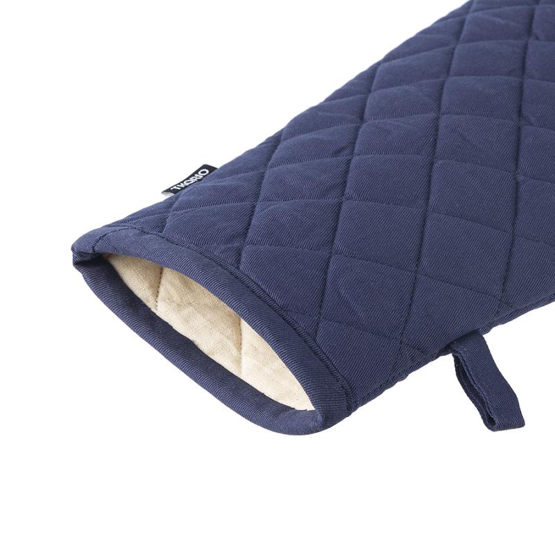 Прихватка-варежка из хлопка темно-синего цвета из коллекции Essential – универсальный кухонный аксессуар. Изделие не нагревается и защищает руку при контакте с горячими поверхностями. Внешняя и внутренняя части выполнены из 100% гипоаллергенного хлопка. Наполнитель: полиэстер. Есть удобная петелька для подвешивания.