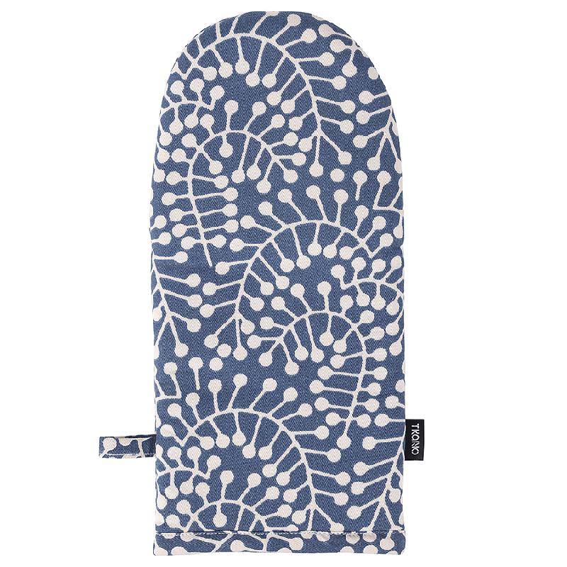 Прихватка-варежка темно-синего цвета с принтом Спелая Смородина из коллекции Scandinavian touch – практичный и полезный кухонный аксессуар. Рисунок со стилизованными ягодами смородины и округлыми линиями веточек разработан одним из ведущих финских дизайнерских агентств. Изделие хорошо сочетается с другим кухонным текстилем из этой же коллекции, оно станет ярким акцентом в интерьере кухни и гармонично впишется в любой современный стиль. Прихватка не нагревается и хорошо защищает руку от контакта с горячими поверхностями. Внешняя и внутренняя части выполнены из 100% гипоаллергенного хлопка. Наполнитель: полиэстер. Есть удобная петелька для подвешивания.